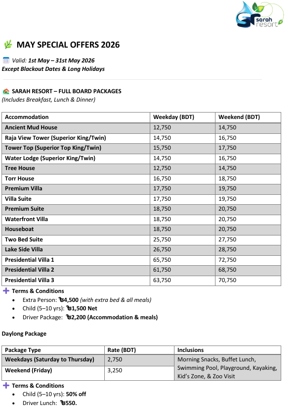 Package starting from only BDT 12,750 NET for two person!